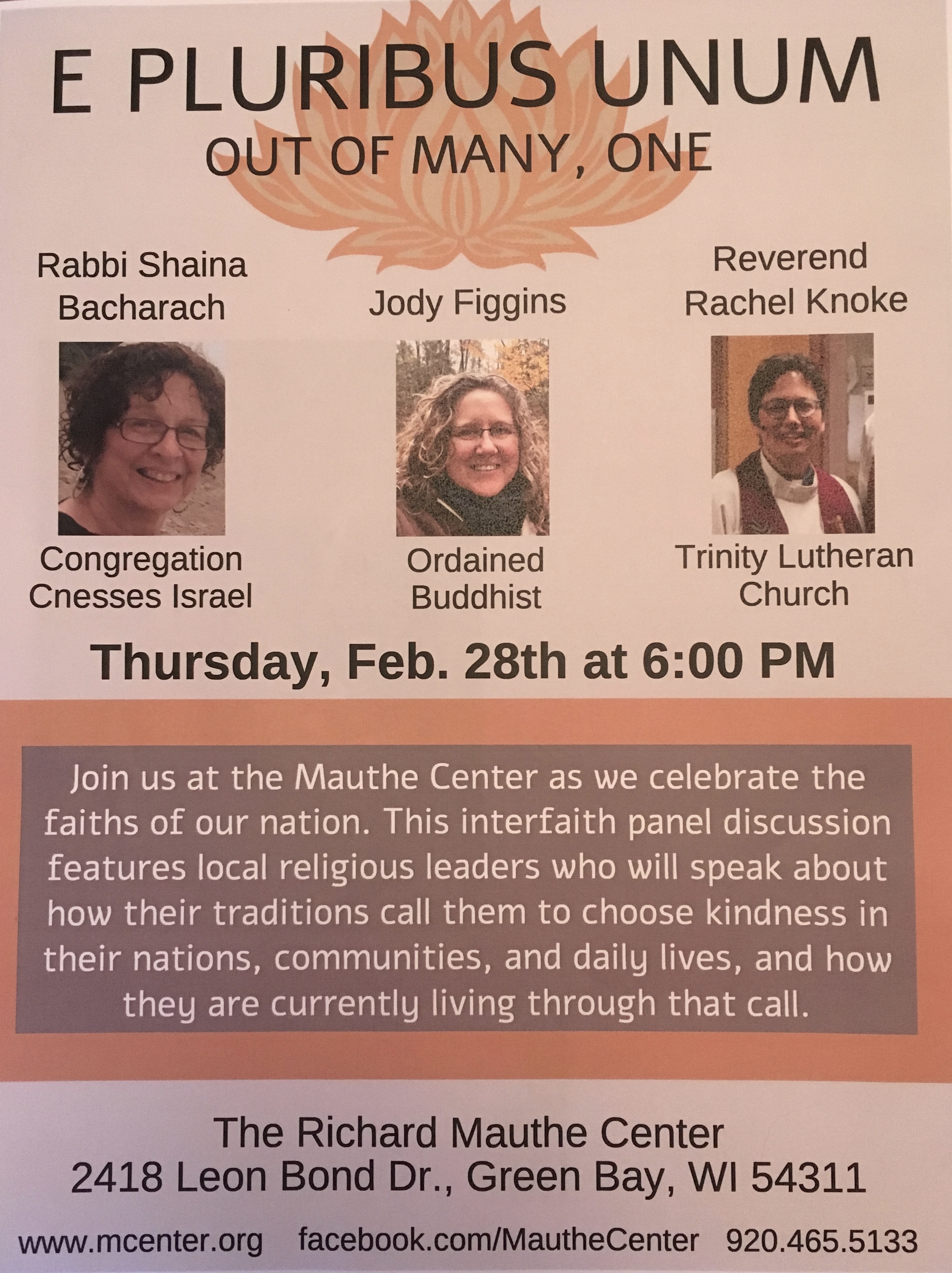 Interfaith Panel Discussion Thurs. 2/28 @ 6pm February 14, 2019 Share this: Click to share on X (Opens in new window) X Click to share on Facebook (Opens in new window) Facebook Like Loading... Related